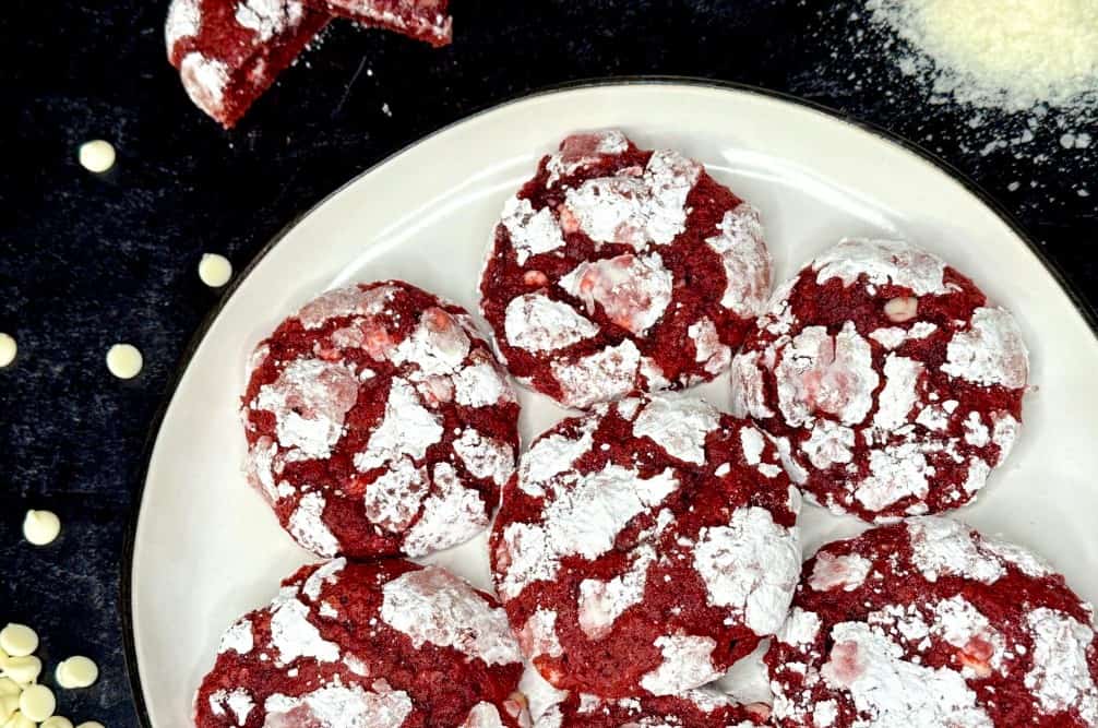 Red Velvet Potato Crinkle Cookies with White Chocolate